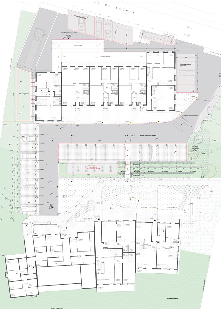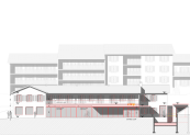 Les installations techniques dévolues au fonctionnement du magasin sont déplacées à l'arrière de l'immeuble, intégrées au talus et aux nouvelles places de parking crées; cette nouvelle implantation permet de réduire les nuisances envers les habitants du site.