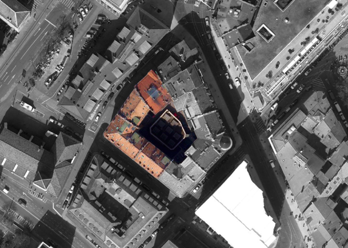 Les immeubles concernés, construits au début du XXème siècle, se situent dans un périmètre protégé (zone 1). L'intervention au niveau des combles consiste à reprendre les principes typologiques des étages inférieurs, permettant de prolonger aisément les verticalités des fluides depuis le niveau inférieur.