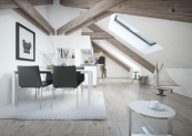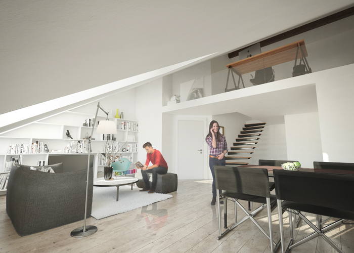 La prise de jours en toiture reste sobre au moyen de lucarnes et fenêtres de toit.