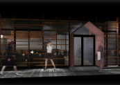 La problématique des odeurs est traitée au travers de hottes d'aspiration disposées à la source et matérialisées tantôt en acier korten, tantôt en bois.