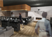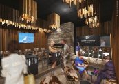 L'accent est donné sur une ambiance chaleureuse, la convivialité est de mise au travers de tables hautes, les matériaux proposés tels que bois, acier et pierre naturelle restent dans l'esprit du thème.