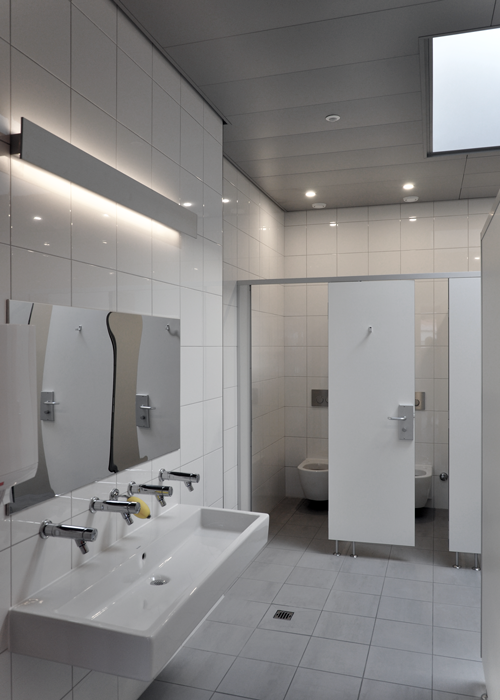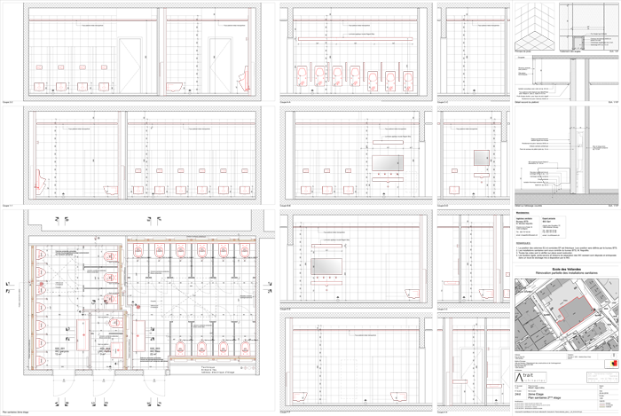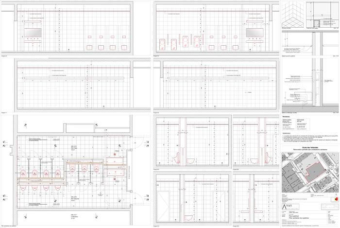 Entreprendre des travaux de rénovation dans un groupe scolaire nécessite une organisation maitrisée afin de respecter le calendrier scolaire. En effet, la principale contrainte fut de réaliser l'ensemble des travaux pendant les vacances scolaires d'été, soit 8 semaines au total. Des choix techniques tels que la préfabrication de l'ensemble des châssis sanitaires, se sont imposés d'eux même, dans un souci d'efficacité et rapidité de mise en oeuvre.